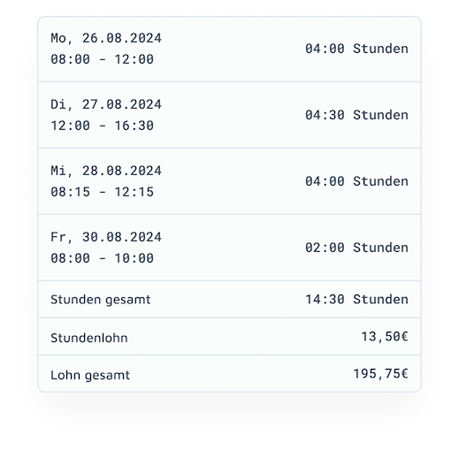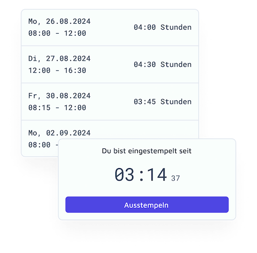Alle erfassten Daten werden gemäß den geltenden Datenschutzbestimmungen behandelt. Deine Mitarbeitenden können sich darauf verlassen, dass ihre Informationen sicher auf deutschen Servern gespeichert sind und vor Datenräubern geschützt sind.