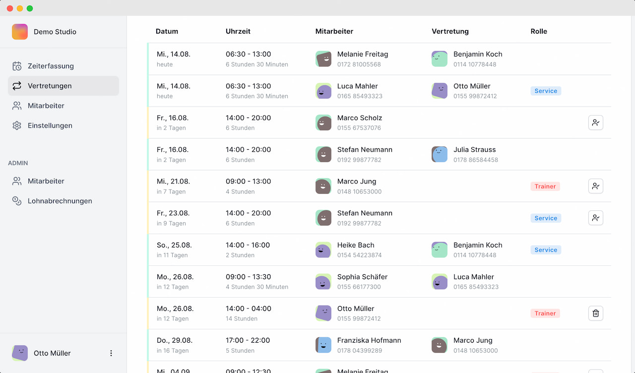 Zeiterfassung und Vertretungsplan für dein Fitnessstudio